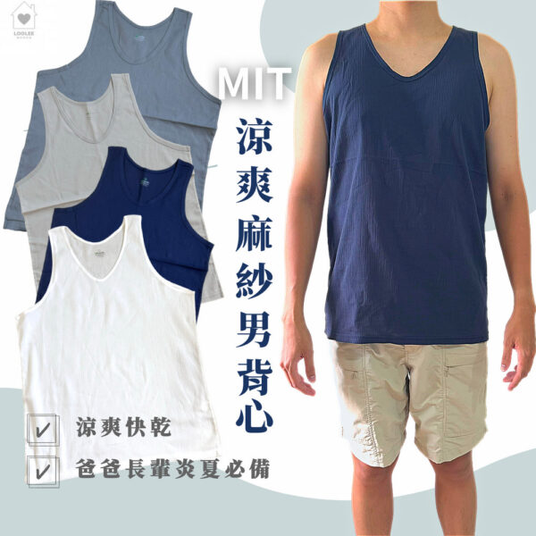 MIT 男麻紗背心 麻紗上衣 阿公汗衫 銀髮族衣服 竹紗